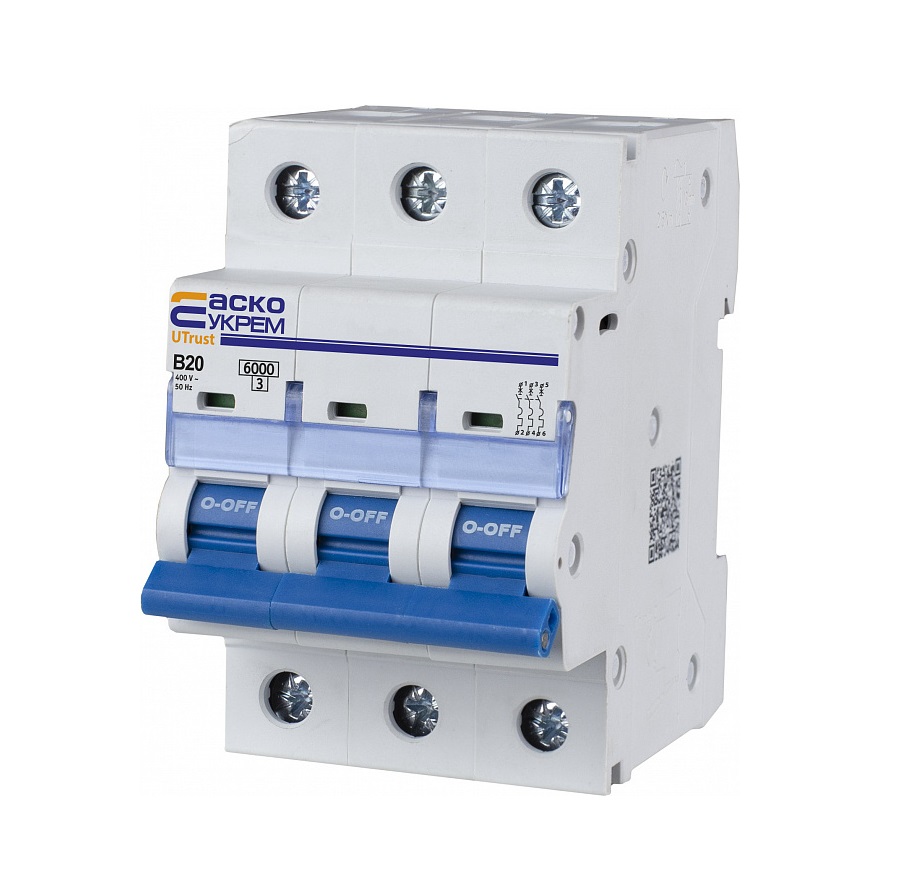 Характеристики: Автоматичний вимикач Аско-Укрем UTrust 3р B 6kА