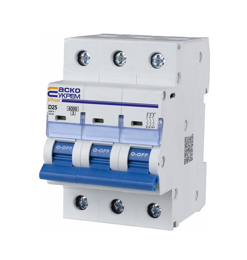 Характеристики: Автоматичний вимикач Аско-Укрем UTrust 3р D 6kА