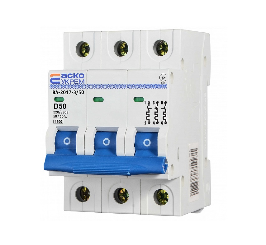Характеристики: Автоматичний вимикач Аско-Укрем ВА-2017/D 3р 4.5kA