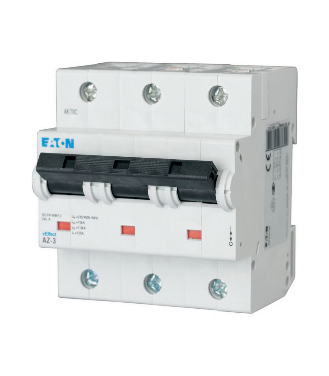 Автоматичні вимикачі Eaton використовуються для захисту ланцюгів від струму перевантаження та короткого замикання. Вимикачі мають систему безпечного підключення, що забезпечує надійне клемне з’єднання. Сумісні зі стандартними шинами, з можливістю їх підключення зверху чи знизу.