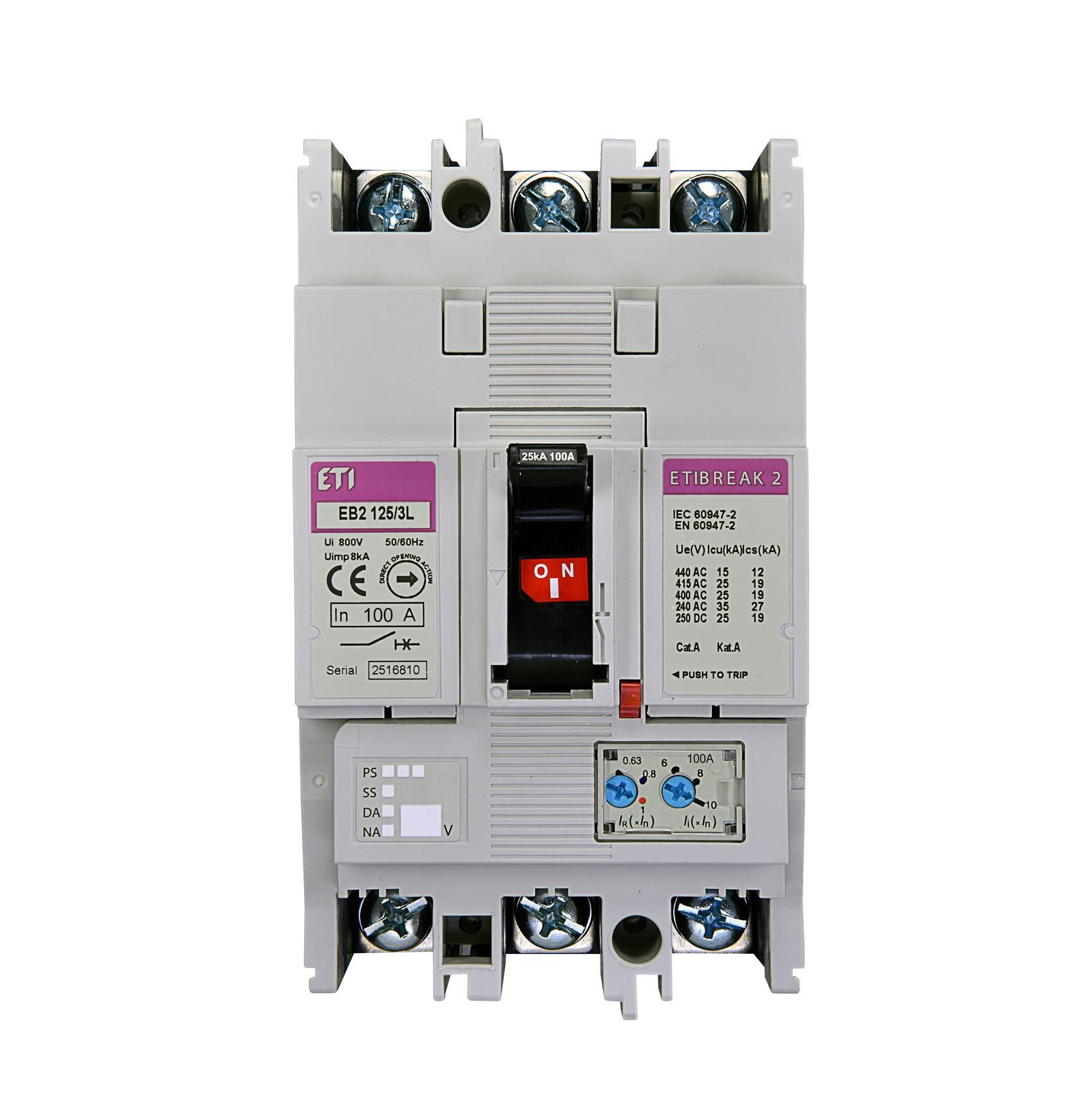 Характеристики: Автоматичний вимикач ETI EB2 125/3L 3р AC 25кА
