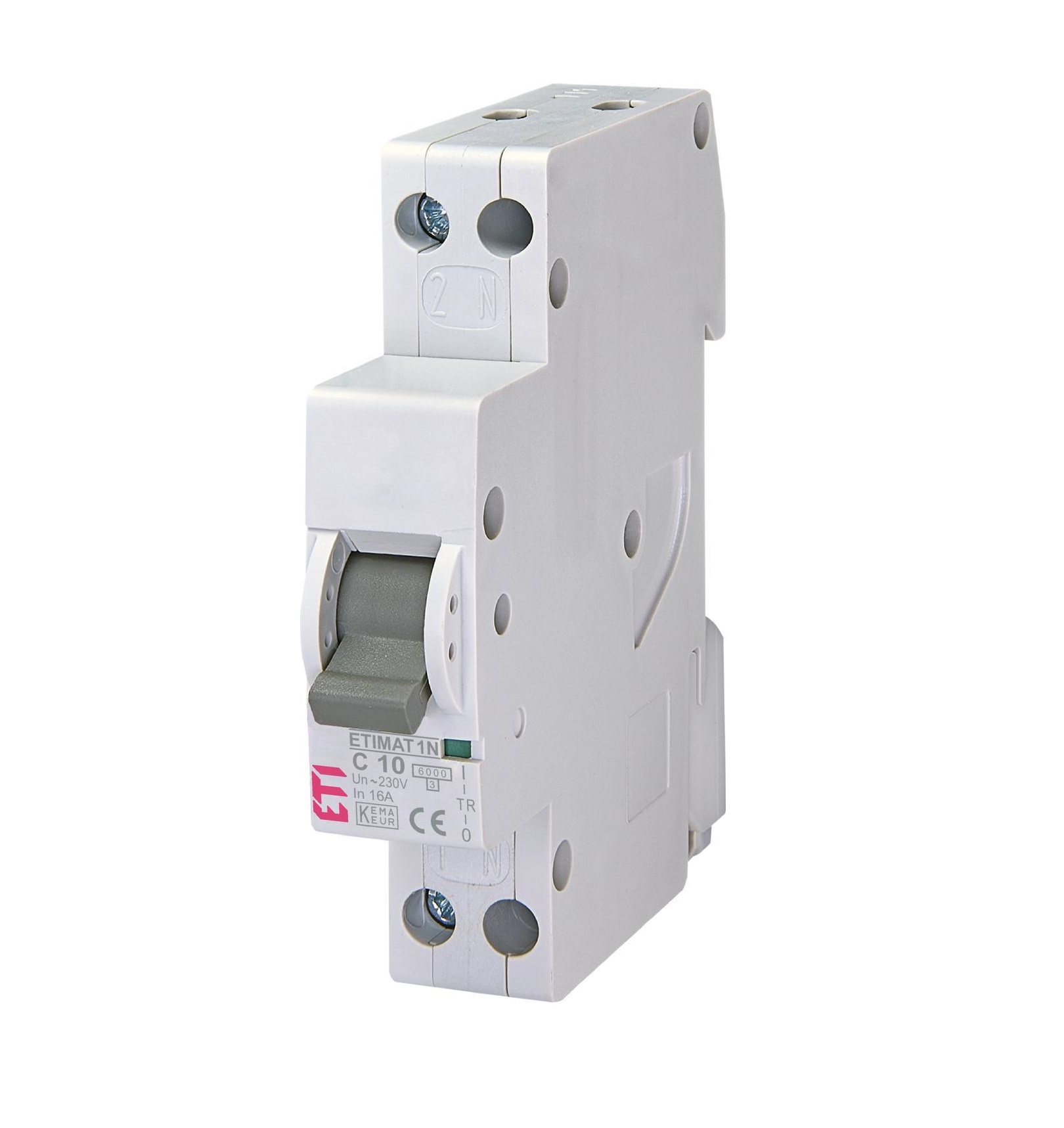 Серія модульних автоматичних вимикачів ETIMAT 1N, спеціальна лінійка автоматів ETI Словенія. Особливість – 1P+N в одному модулі. Номінальним струмом від 6А до 32А. Вимикальна здатність 6kA. Індикація положення контактної групи.