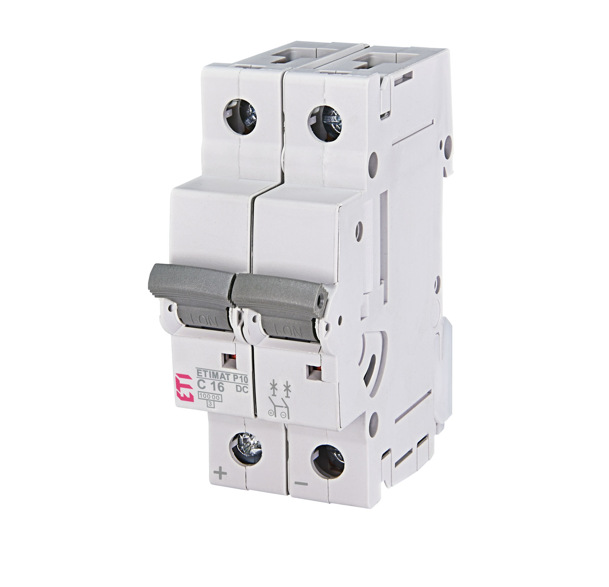 Серед особливостей автоматів серії ETIMAT P10 DC слід відзначити наявність індикатора стану “ON/OFF”, індикатора стану контактної групи, можливість блокування замком, можливість підключення шини живлення як зверху, так і знизу, захист від випадкового дотику до струмоведучих частин, можливість монтажу додаткових аксесуарів.