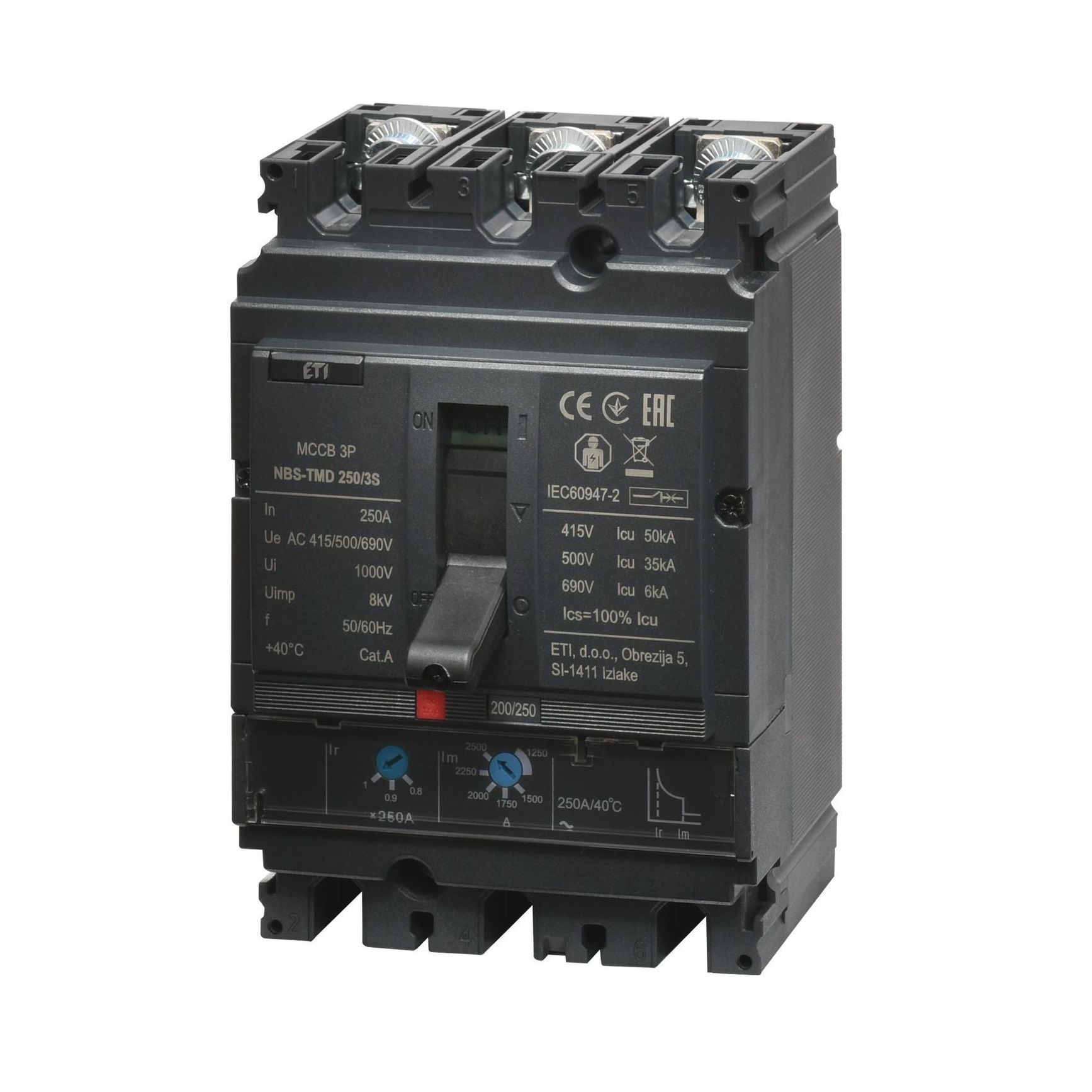 Автоматичний вимикач ETI NBS-TMD 250/3S 3P AC 50кА