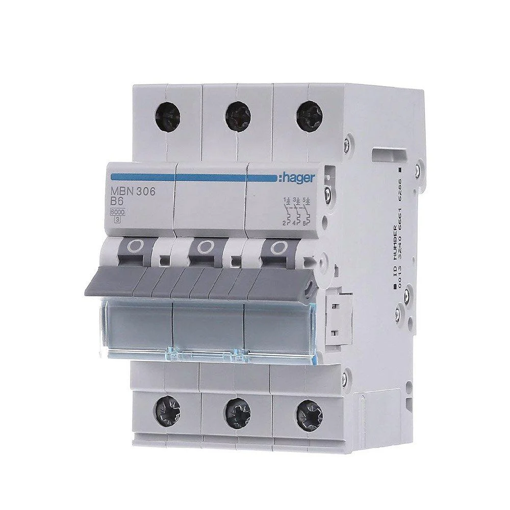 Основні характеристики: Автоматичний вимикач Hager MBN 3P B 6кА 6A-63A