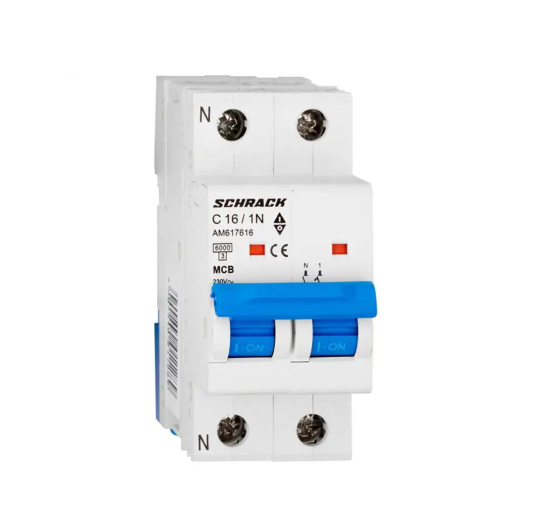 Вимикач-автомат на 1Р+N полюси Schrack Technik (Австрія) використовується на об’єктах різного соціального та промислового значення для запобігання займанню та оплавленню електропроводки внаслідок замикань та перевантажень мережі.