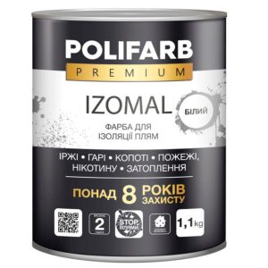 Фарба IZOMAL ТМ POLIFARB ідеальна для перекриття складних забруднень без робіт демонтажу основи, що надає можливість зробити швидкісний ремонт. Утворює надійний бар’єр від пожовтіння. Володіє збільшеною адгезією до основ, навіть до тих, що пофарбовані масляними або алкідними емалями. Швидко висихає.