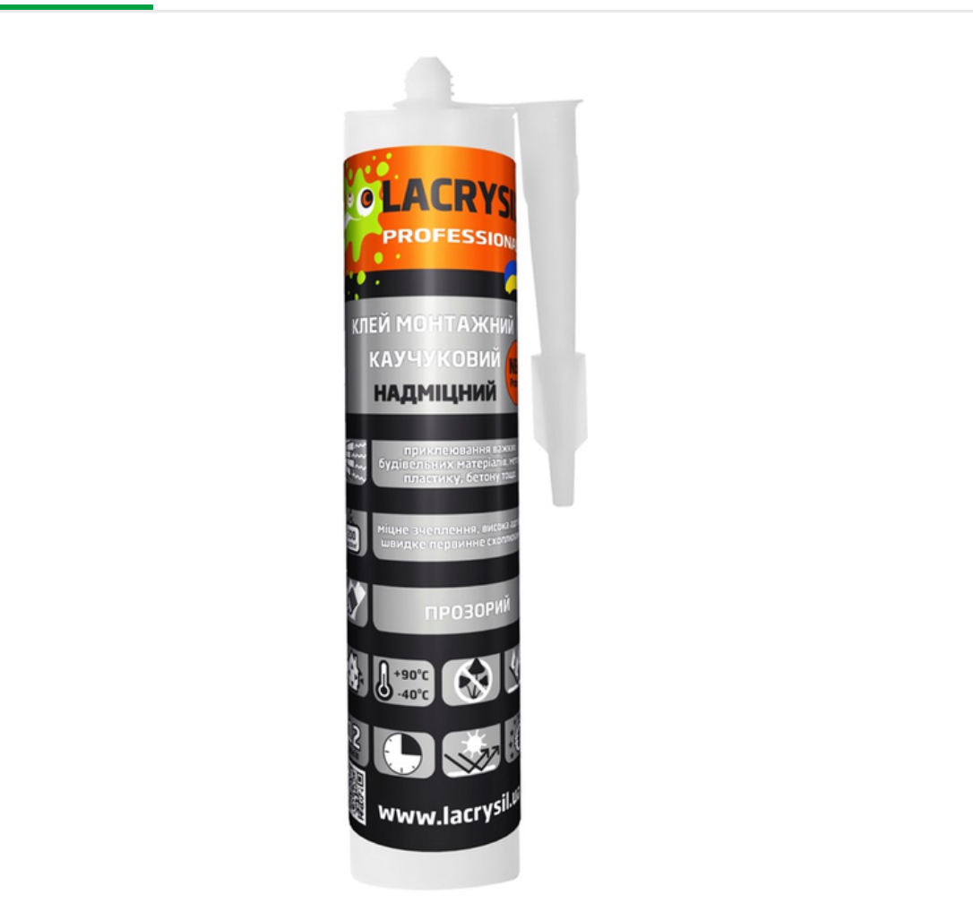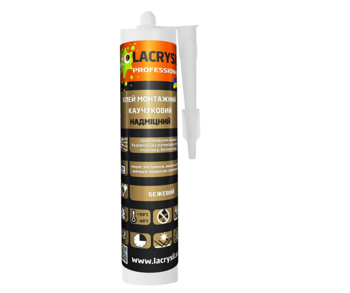 Клей монтажний каучуковий “Надміцний” від Lacrysil — це високоякісний однокомпонентний клей, призначений для швидкого та надійного приклеювання важких конструкцій до різноманітних поверхонь.
