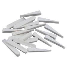 Використовуються для вирівнювання віконних рам і дверних коробок. Забезпечують щільне прилягання конструкцій і запобігають перекосам під час експлуатації. Такі клини зазвичай виготовляються з пластику або дерева, що забезпечує їх міцність і стійкість до вологи.