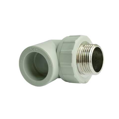 Коліно ППР з зовнішньою різьбою з кріпленням Georg Fischer – елемент водопровідної та опалювальної системи трубопроводу. Швейцарський бренд Georg Fischer (виробничі потужності з виготовлення ППР труб і фітингів знаходяться в Туреччині) має сертифікати, що відповідають європейським стандартам якості. Фітинг має строк служби 50 років.