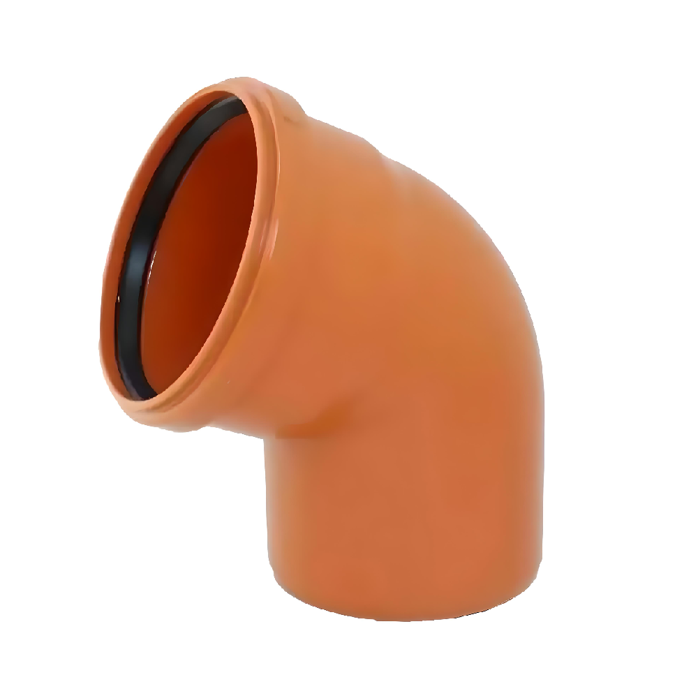ПВХ коліно зовнішнє — це фітинг, який використовується в системах зовнішньої каналізації для зміни напрямку трубопроводу. Коліно має вигнуту форму, що дозволяє змінювати кут між трубами. Зазвичай на 45 або 90 градусів, і забезпечує безперешкодний потік стічних вод.