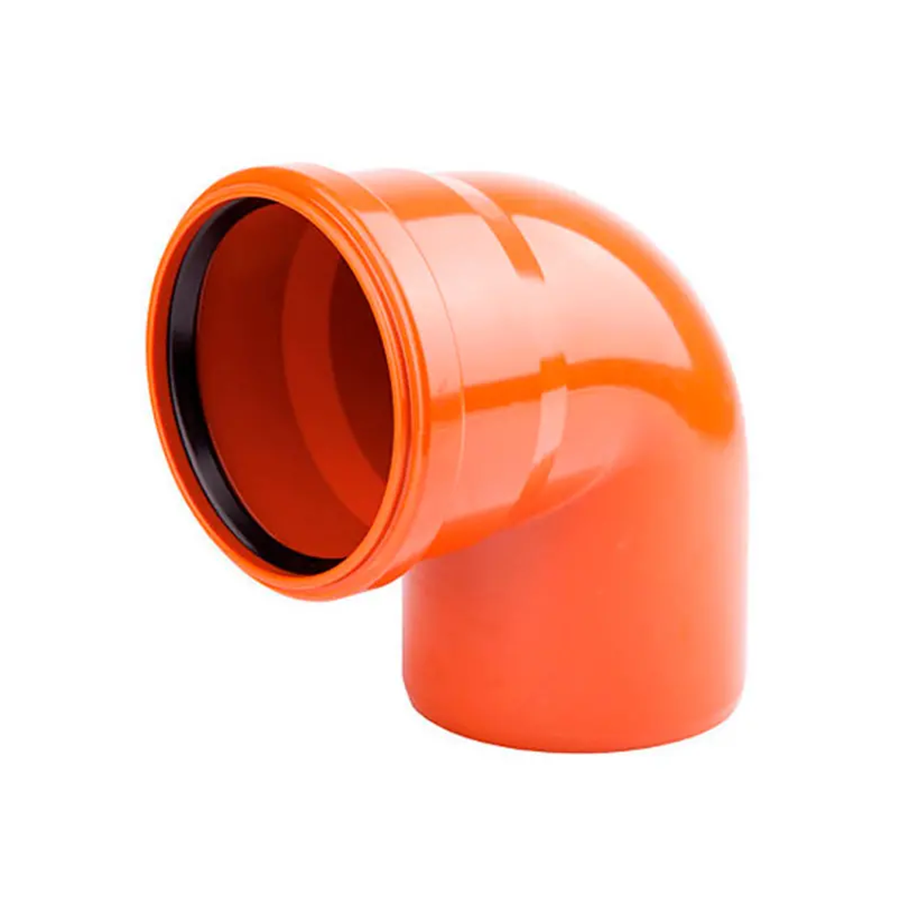 Коліно ПВХ є важливим елементом зовнішніх каналізаційних систем, що дозволяє зручно і ефективно змінювати напрямок трубопроводів при їх монтажі або ремонті.