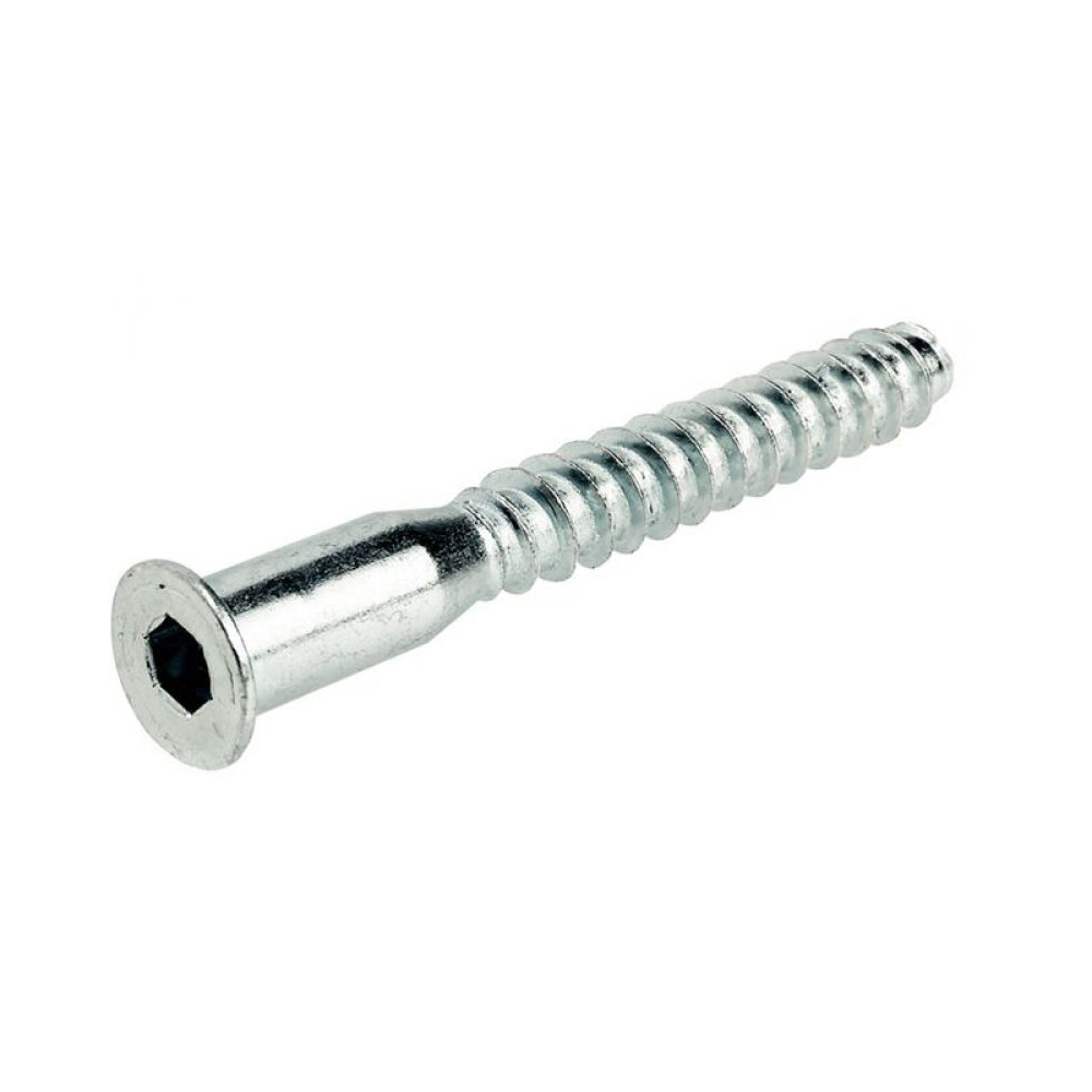 Тіло шурупа більш масивне, виготовлено із сталі високої якості з покриттям проти корозії. Марка матеріалу дозволяє не ламатися стяжці в процесі скручування і при навантаженнях на вигин. Різьба самонарезающая з широким кроком. Капелюшок має потайну конструкцію, причому подовжена головка гвинта. Шліци під інструмент йдуть в двох виконаннях – для фігурної викрутки і шестигранного ключа. Немає звичного загострення на кінці, він тупий.