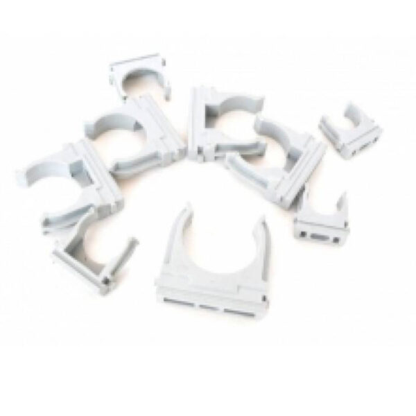 Це кріпильні елементи, що використовуються для фіксації труб в будівельних, комунікаційних і електричних системах. Білий колір таких кліпсів часто робить їх непомітними на світлих поверхнях, що дозволяє забезпечити естетичний вигляд монтажу, особливо в інтер’єрі житлових і офісних приміщень.