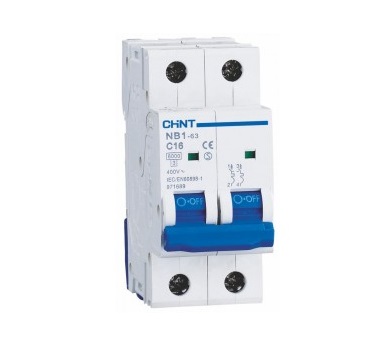 Модульні автоматичні вимикачі CHINT серії NB1-63 2 полюси характеристики B захищають розподільчі та групові кола від перевантажень і струмів короткого замикання. Застосовуються в ВРУ житлових і адміністративних будівель, в харчовій, нафтогазової і гірничодобувній галузях, цивільному будівництві.