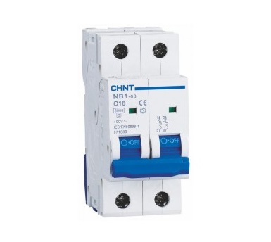 Модульні автоматичні вимикачі CHINT серії NB1-63 2 полюси характеристики С захищають розподільчі та групові кола від перевантажень і струмів короткого замикання. Застосовуються в ВРУ житлових і адміністративних будівель, в харчовій, нафтогазової і гірничодобувній галузях, цивільному будівництві.