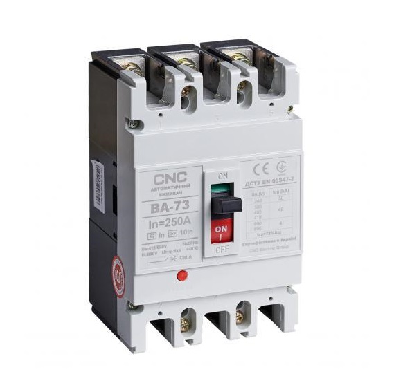 Автоматичні вимикачі ВА-73 в литому корпусі з термостійкого негорючого склонаповненого поліаміду призначені для установки в лінійних і розподільних електромережах змінного струму номінальної величини до 160А, частотою 50/60Гц, номінальної напруги до 690В, з метою захисту від перевантаження для нечастих оперативних включень та відключень.