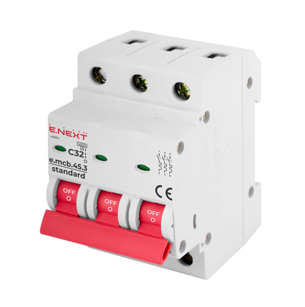 Характеристики: Модульний автоматичний вимикач e.mcb.stand.45.3 3р C 4.5kA
