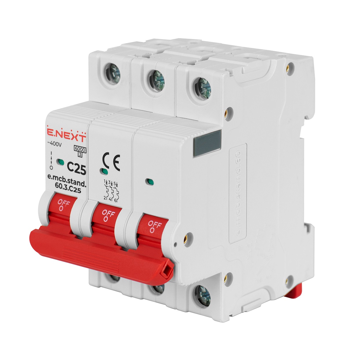 Характеристики: Модульний автоматичний вимикач e.mcb.stand.60.3 3р C 6kA