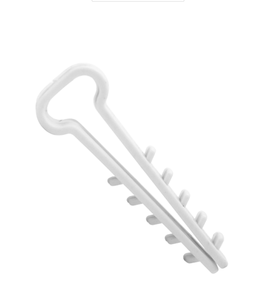 Нейлоновий дюбель типу «ялинка» – це спеціальний кріпильний елемент, призначений для швидкого та надійного закріплення плоских кабелів (наприклад, телефонних, телевізійних або інтернет-кабелів) на різних поверхнях.