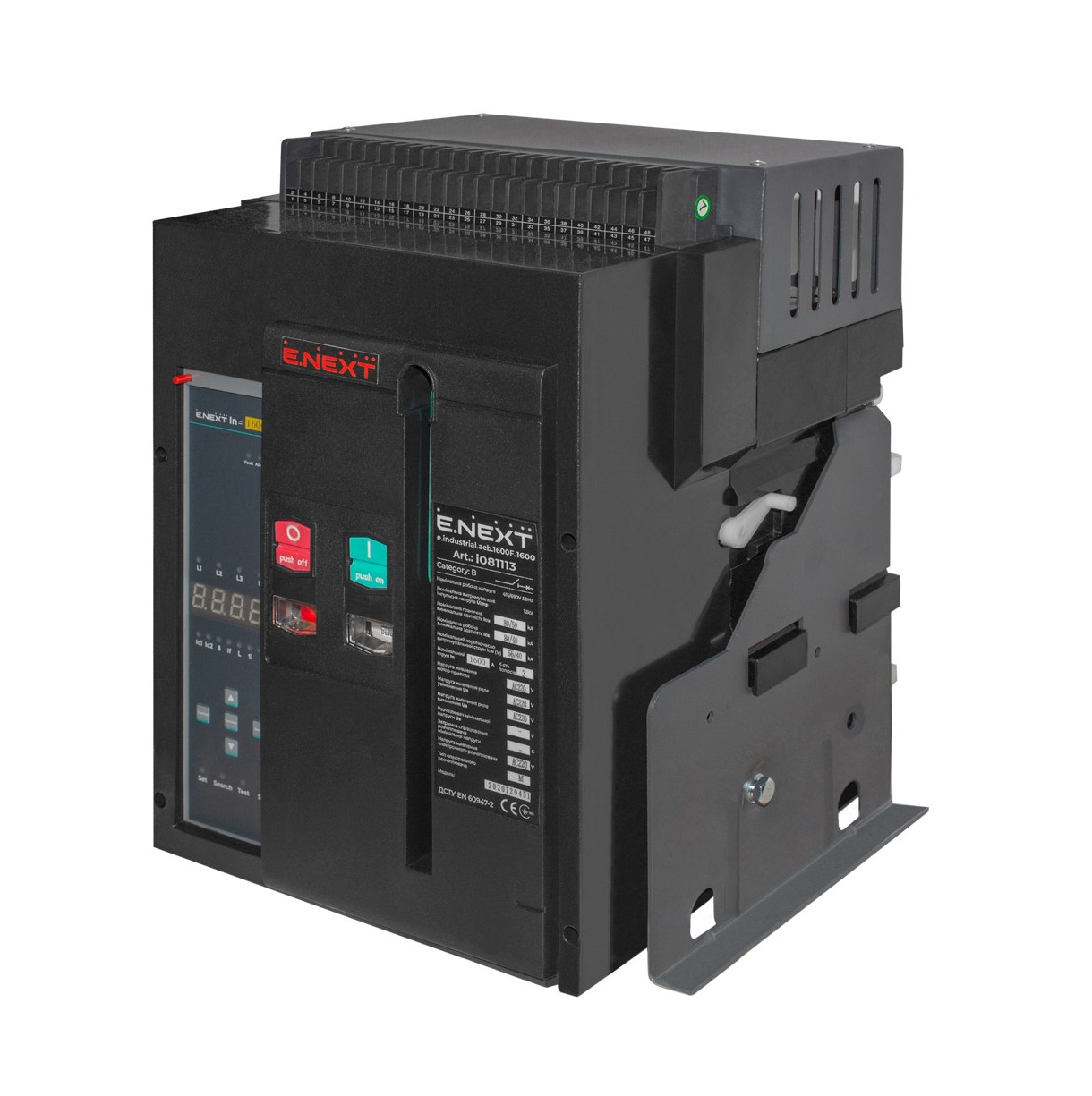 Повітряний автоматичний вимикач E.Next e.industrial.acb.1600 400В 3Р з мотор-приводом та РН 42кА (1000A-1600A)