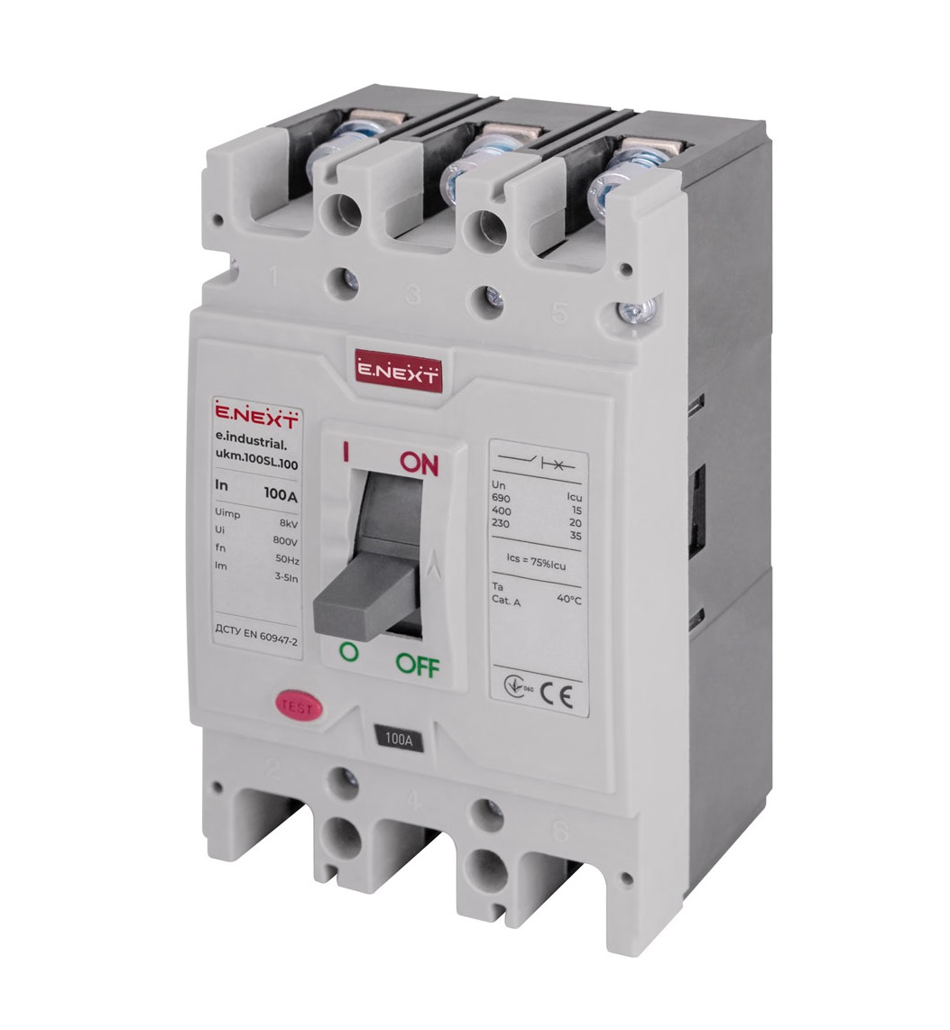 Основні характеристики: Силовий автоматичний вимикач e.industrial.ukm.100SL 20kA 3р