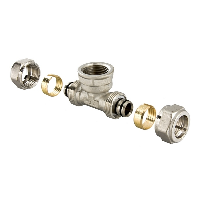 Корпус трійника виготовлений із латуні CW617N — високоякісного сплаву, стійкого до механічних навантажень, високих температур і корозії. Для додаткового захисту фітинг має нікельоване покриття.